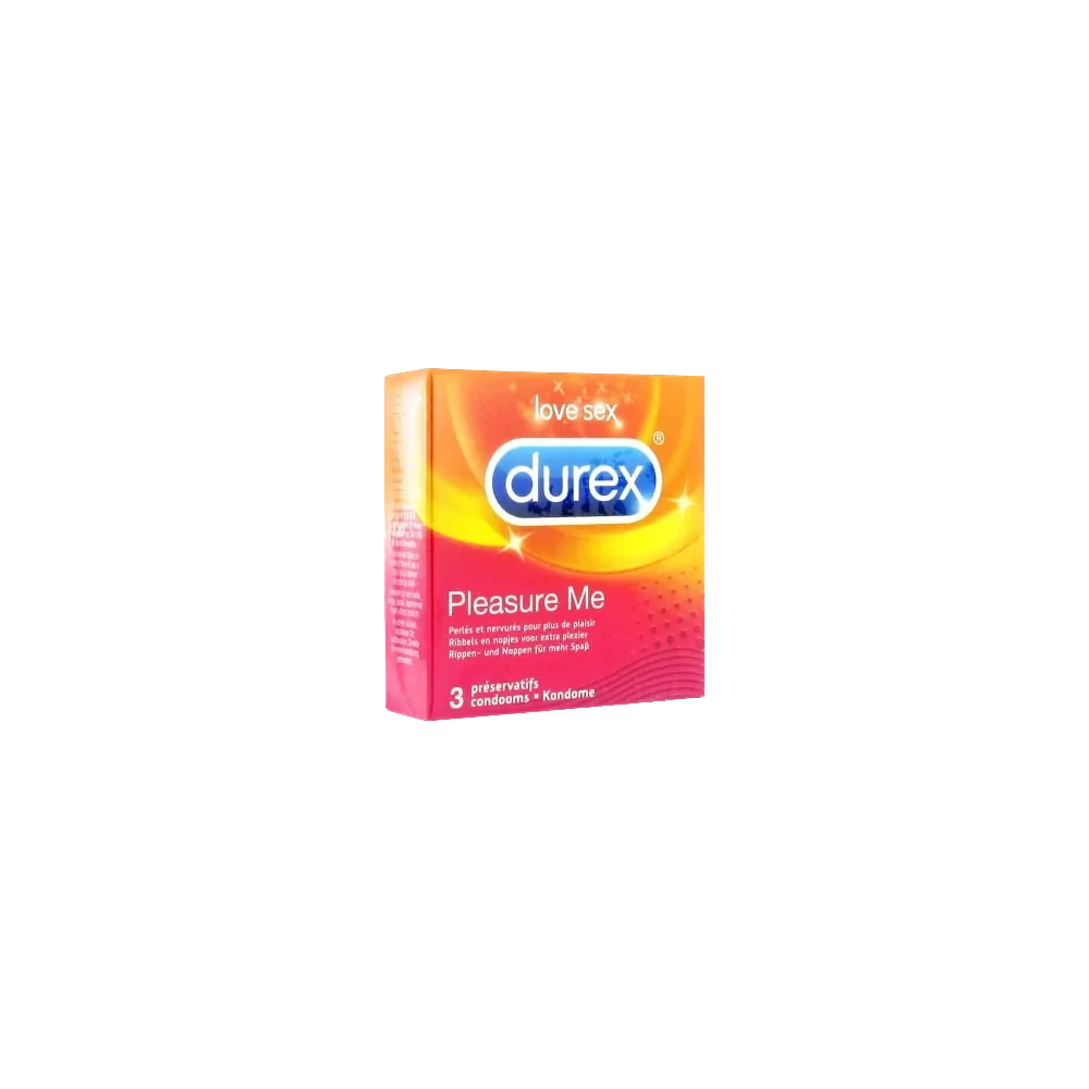 Durex Pleasure Me 3 Préservatifs sont des préservatifs qui ont une texture à la fois nervurée et perlée tout à fait unique pour une plus grande stimulation des deux partenaires.