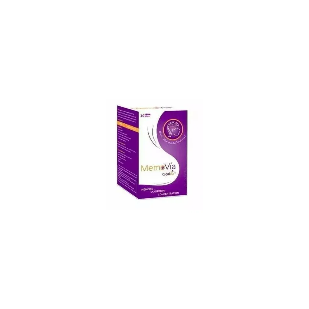 MEMOVIA est un complément alimentaire formulé à base de Cognivia™, une substance active innovante. Cognivia™ combine un extrait de feuille de sauge de jardin biologique et de l’huile essentielle de sauge espagnole biologique encapsulée dans de la gomme d’acacia.