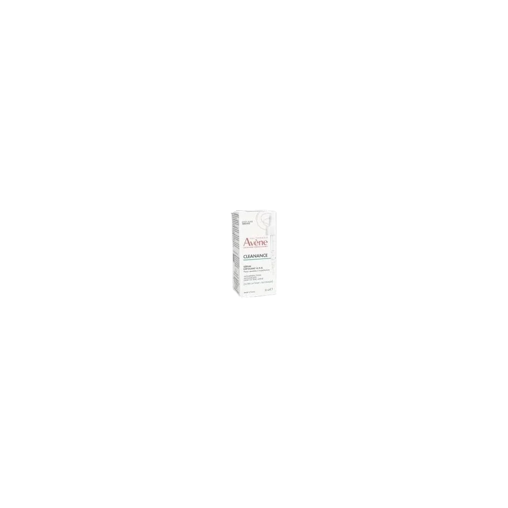 Le Sérum Exfoliant aux acides naturels brevetés*** 1,5x plus efficace* que l'acide salicylique, pour un grain de peau affiné dès 10 jours**. Le duo d'acides exclusifs formé par l'acide lactique et succinique permet de réduire les imperfections, les pores et les marques. L'acide glutamique apporte une action sébo-régulatrice pour diminuer l'excès de sébum. Sa formule est enrichie en Eau thermale d'Avène pour apaiser, renforcer et rééquilibrer la peau. Dédié aux peaux sensibles et testé sur les peaux à tendance acnéique, le Sérum Exfoliant A.H.A contient 10 ingrédients seulement et 99% d'ingrédients d'origine naturelle. Avantage Un duo d'acides naturels 1,5x plus efficace* que l'acide salicylique, pour un grain de peau affiné dès 10 jours**. Bénéfices • ANTI-IMPERFECTIONS : réduit les boutons et points noirs • ANTI-MARQUES : diminue les marques résiduelles • GRAIN DE PEAU AFFINÉ : resserre les pores et lisse le grain de peau.