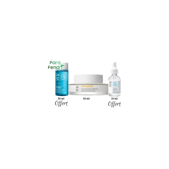 La Trousse Ma Routine Raffermissante SVR offre une hydratation intense et un soin anti-âge avec l'Essence Hydra B3 30 ml (offert), l'Ampoule Hydra B3 10ml (offerte) et la crème Collagen Biotic 50ml. Parfaite pour lisser, raffermir et illuminer toutes les peaux, même les plus sensibles.