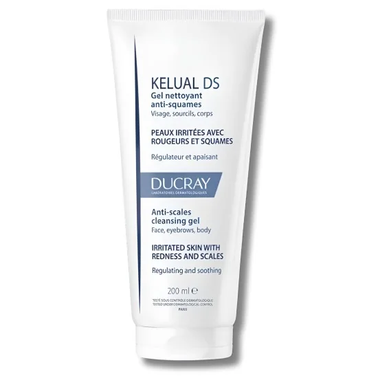 Ducray Kelual DS Gel Nettoyant 200ml purifie, apaise et élimine efficacement les squames, rougeurs et démangeaisons des peaux irritées grâce à sa formule douce enrichie en actifs antifongiques brevetés.