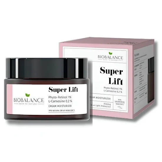 Cette crème hydratante au Phyto-Rétinol 1% et L-Carnosine 0,2% lisse les rides, réduit les taches brunes et protège la peau contre la lumière bleue.