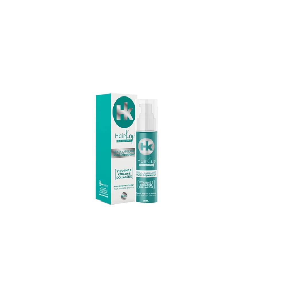 ALMAFLORE HAIR KEY Sérum Capillaire Nutri-Réparateur est un soin pour les cheveux qui permet de nourrir, réparer et protéger la chevelure. Ce sérum riche en vitamine E, Kératine et Collagène est déstiné pour tout type de cheveux.