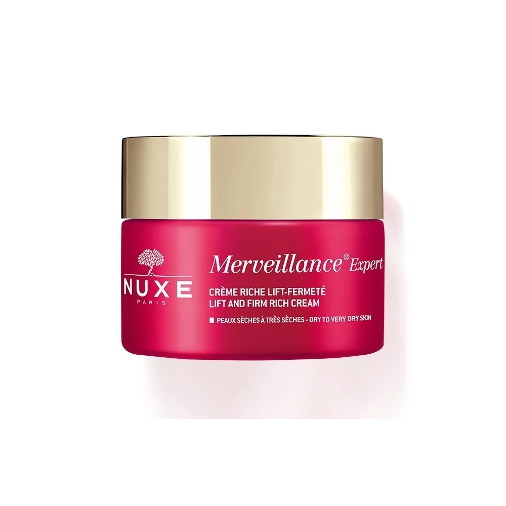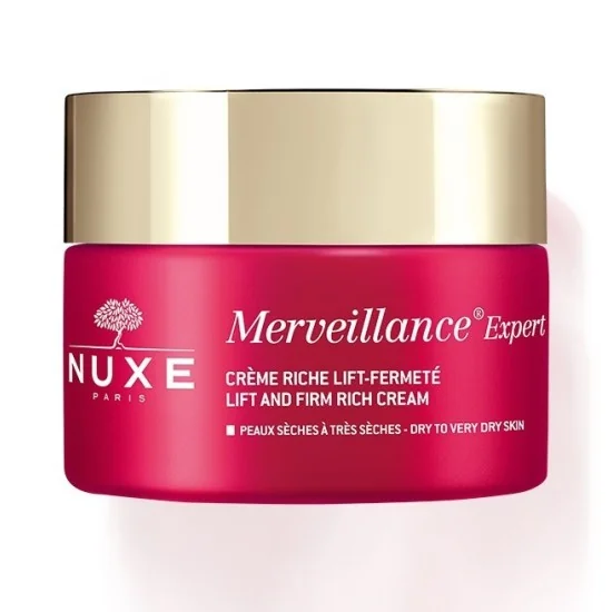 NUXE Merveillance Expert Crème riche lift-fermeté - Peaux sèches à très sèches NUXE Merveillance Expert Crème riche lift-fermeté - Peaux sèches à très sèches permet de nourrir et lisser la peau profondément exerçant ainsi une action sur la fermeté, sur l'élasticité et sur l'éclat de la peau. Cette crèmes lifting s'adapte aux peaux séches à très séches pour apporter un effet tenseur immédiat et présente un soin antirides, embellissant et repulpants qui s'attaque aux traits pour les défatiguer et aux rides installées pour les lisser.