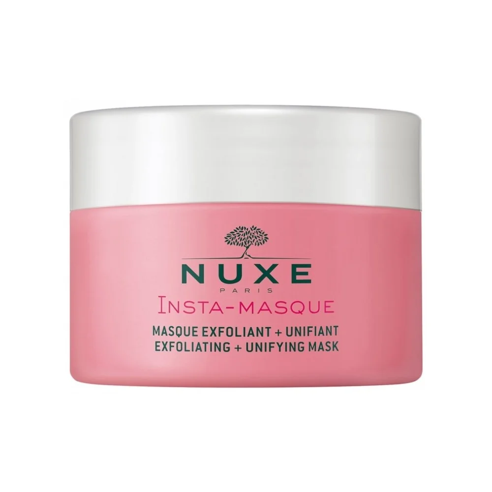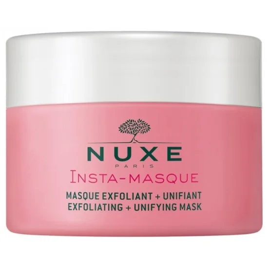 Nuxe Insta-Masque, le masque exfoliant allie les bienfaits de l'eau florale de Rose à l'huile de Macadamia et une fine poudre gommante d'origine naturelle pour exfolier et unifier la peau en 2 minutes chrono. Instantanément, le grain de peau est lissé et le teint s'illumine.