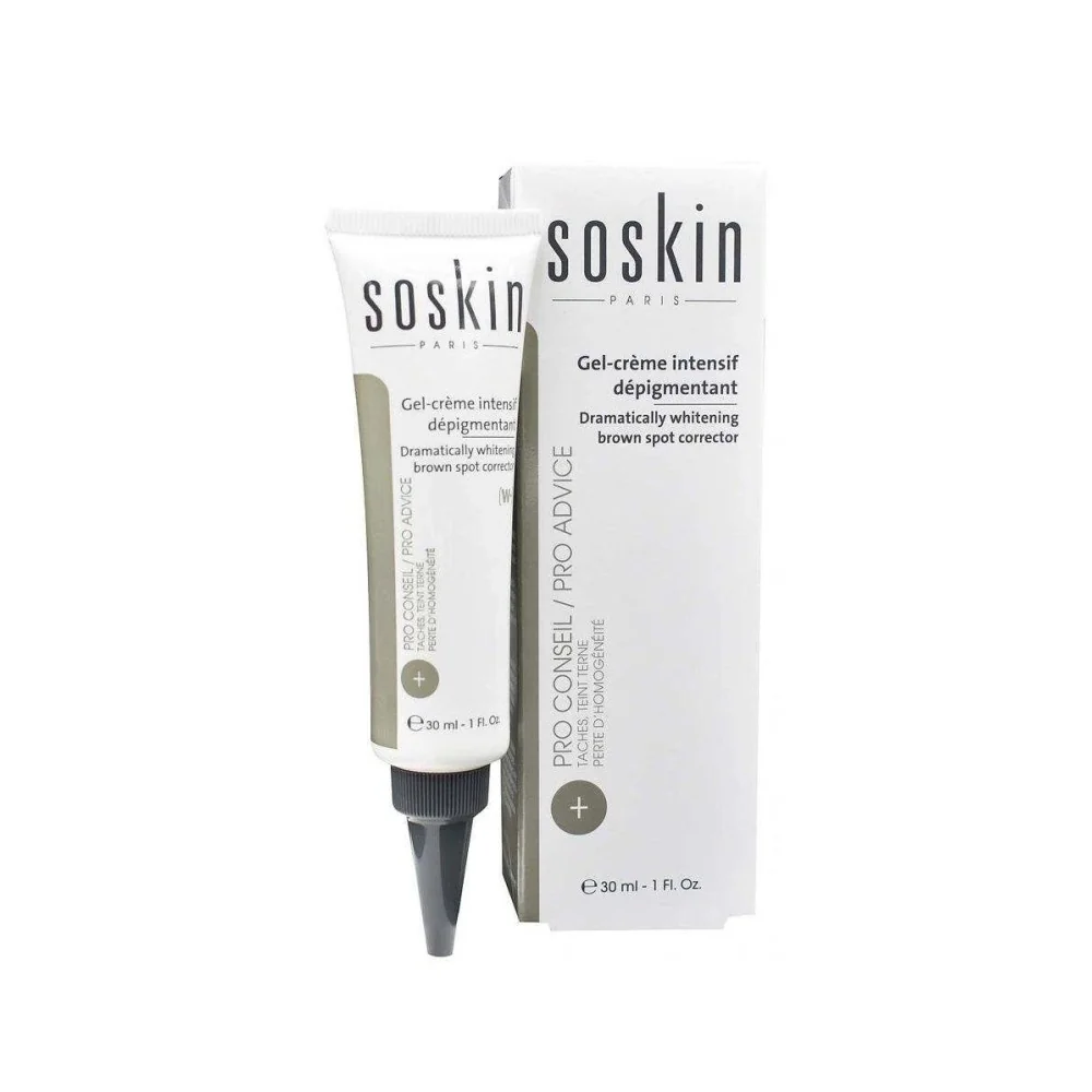 Soin ciblé, suractivé au complexe SOSKIN D-WHITE. Assure une efficacité suffisamment douce pour convenir à un usage quotidien. - SOSKIN D-WHITE, concentré en hexylresorcinol, cible l’origine des phénomènes d'hyperpigmentation. Aide à réduire l’apparence des taches visibles en surface et prévient l’apparition des taches naissantes. - Acide ascorbique et silicium : dérivé de vitamine C stabilisée. Contribue à réduire le nombre de pigments contenus dans l’épiderme. Aide à diminuer l’intensité des taches brunes et des défauts pigmentaires. RESULTATS PERCEPTIBLES : L’intensité des taches brunes et défauts pigmentaires est atténuée. Les zones hyper pigmentées paraissent comme gommées et lissées, texture fluide, légère et hydratante adaptée à une utilisation locale. Adapté à tous les types de peaux. Sans effet secondaire. Fabriqué en France. Testé dermatologiquement.