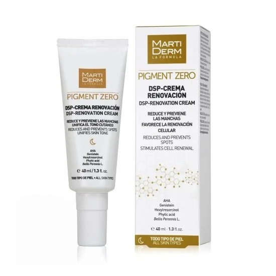 MARTIDERM DSP Crème Rénovatrice Dépigmentante 40 ml aide à réduire les taches pigmentaires, unifier le teint et redonner éclat et luminosité à la peau.