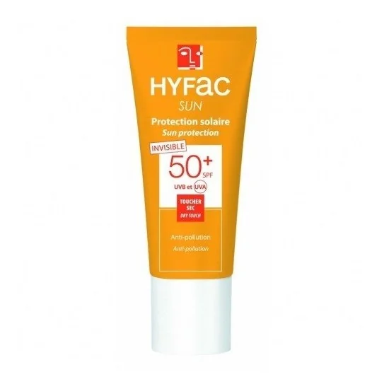 HYFAC Sun Protection solaire Invisibles SPF50 Toucher sec Anti-pollution Visage 40 ml Le soin de protection solaire invisible Hyfac Sun offre une haute protection solaire SPF50 pour les peaux les plus fragiles. Les extraits de graines de Moringa sont réputés pour faciliter la protection de l'épiderme. Cette crème vous assure une protection optimale contre le soleil et les agressions extérieures. Sa texture non grasse, offre un toucher sec et ne laisse aucune trace blanche.