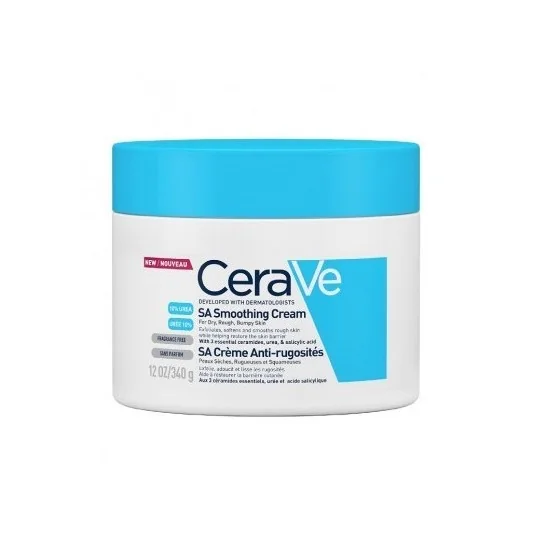 CeraVe SA Crème Anti-Rugosités 340 ml est une crème indiquée pour exfolier, adoucir et lisser les rugosités des peaux sèches, rugueuses et squameuses. Sa formule aux 3 céramides essentiels, urée, LHA et acide salicylique, hydrate et lisse les peaux sèches et rugueuses. Elle aide à restaurer la barrière protectrice de la peau. Sans parfum. Non comédogène. Hypoallergénique. CONSEIL D'UTILISATION : Appliquer généreusement aussi souvent que nécessaire. Eviter le contour des yeux. Indication : Hydratation des peaux sèches, rugueuses et squameuses.