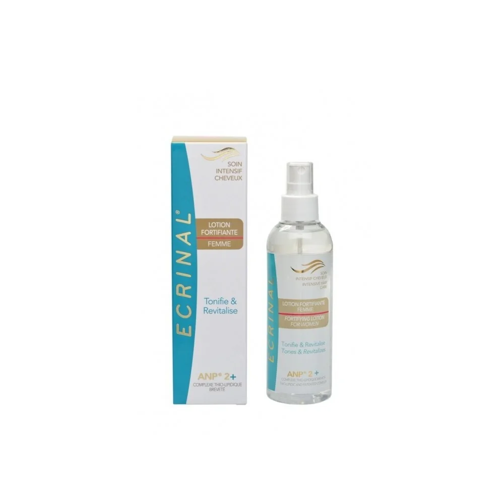 ECRINAL Lotion Cheveux Fortifiante : Cette lotion enrichie à l’ANP® 2+ peut être vaporisée tous les jours sur les cheveux secs ou mouillés. Elle fortifie la fibre capillaire, hydrate, revitalise et redonne instantanément à la chevelure douceur, volume et brillance. Aide à rafraîchir la coiffure entre deux shampooings. Formule non grasse, non collante.