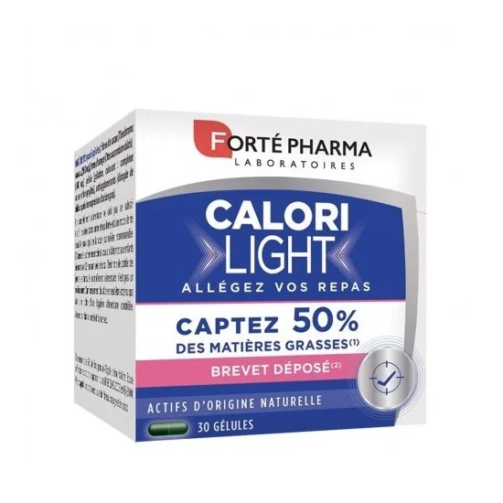 CaloriLight est un complément alimentaire naturel, basé sur une formule de FIBROCAPTOL une association exclusive de fibres d'orange et de cacao au fort pouvoir lipo-absorbant. Ses actifs d'origine naturelle peuvent aider à : pouvoir de capture des graisses ralentissement de la digestion diminution de la glycémie ralentissement de l’assimilation des sucres effet satiétant