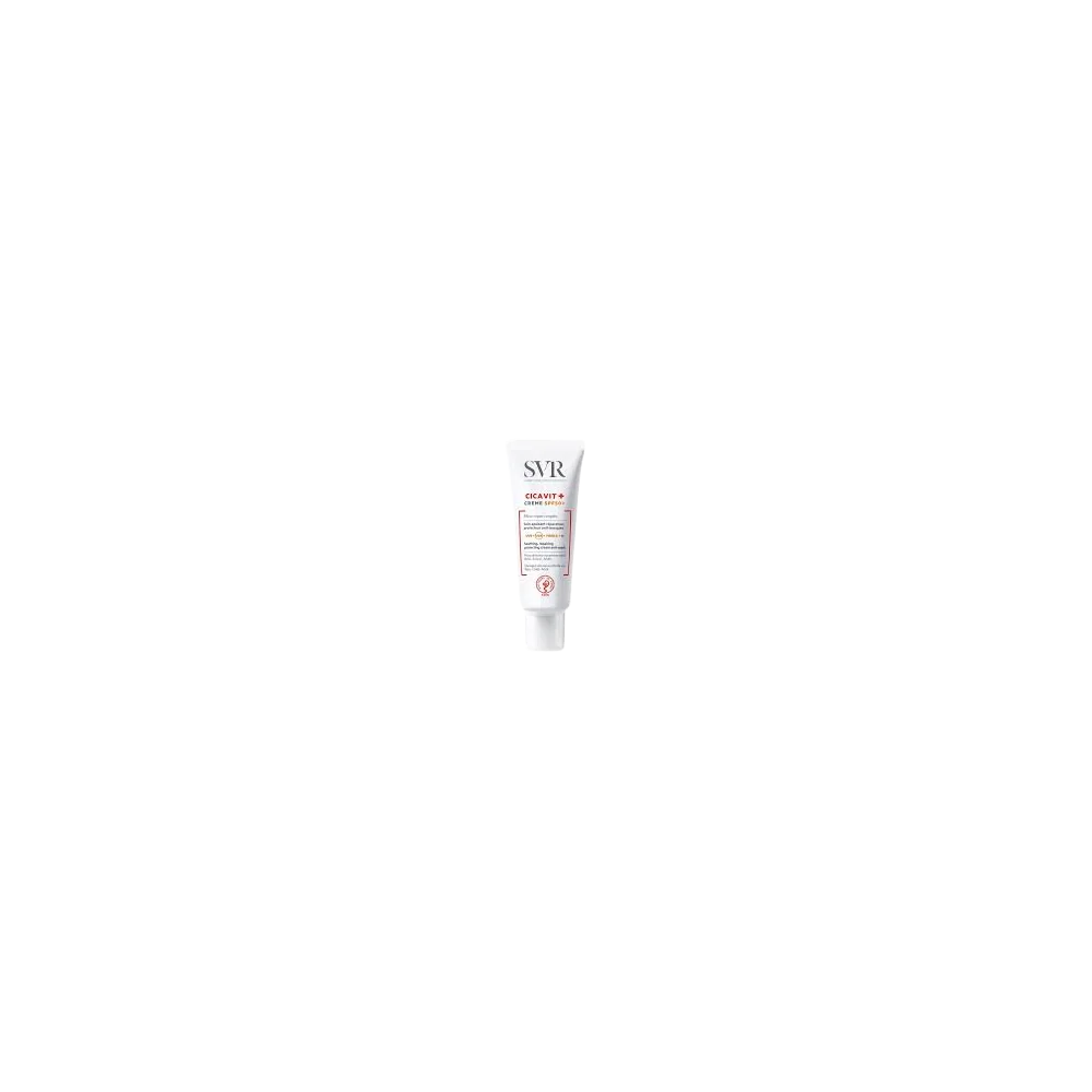 SVR CICAVIT+ Crème SPF50+ est un soin apaisant intense qui accélère la réparation cutanée X7 et cible tous les types de rayons pour limiter les risques de marques rouges et brunes Pour toutes les peaux abîmées et irritées même sensibles, exposées au soleil. Dès la naissance, enfant, adulte. Visage, corps, plis. SVR CICAVIT Crème SPF50 garantit un été sans marques ! Sa texture invisible fusionne avec la peau pour apaiser intensément et accélérer la réparation cutanée X7(1) des peaux abimées et irritées de toute la famille. Formulée avec une technologie filtrante anti-UVA/UVB et un complexe anti-oxydant anti-lumière visible et infrarouges, SVR CICAVIT SPF 50 cible tous les types de rayons(2) pour limiter les risques de marques rouges et brunes. Une peau abimée passe par 3 étapes essentielles pour un bon rétablissement : la phase inflammatoire (1 à 3 jours), la phase de réparation (1 à 3 semaines) puis la phase de remodelage (3 à 24 mois). Une exposition au soleil pendant ces phases peut aggraver l’état de la peau et des marques rouges ou brunes peuvent apparaître. Le cœur de formule de SVR CICAVIT Crème SPF50 favorise à la fois chacune des étapes clés de la réparation cutanée tout en protégeant des méfaits du soleil pour restaurer une peau saine et belle. Testée sous contrôle dermatologique et pédiatrique. Hypoallergénique. HAUTE CONCENTRATION EN ACTIFS REPARATEUR ET PHOTOPROTECTEUR POUR UNE EFFICACITE OPTIMALE : Complexe d’actifs réparateurs qui stimule le remodelage de la peau : Accélère la réparation cutanée x7(1) Apaisant & anti-marques Polysaccharide riche en rhamnose : Forme un film protecteur et empêche l’adhésion des bactéries pathogènes à la surface de la peau Réduit rougeurs et échauffements Un sucre prébiotique qui agit sur le microbiome : Restaure l’équilibre de la flore cutanée en stimulant la croissance de la flore bactérienne bénéfique permet d’optimiser le temps et la qualité de réparation de la peau Integral Secure Technology qui cible tous les types de rayons(2) : Un complexe filtrant anti-UVA et UVB Une technologie anti-oxydante anti-lumière visible et infrarouge