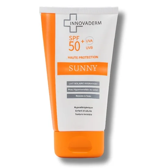Innovaderm Sunny Lait Solaire SPF 50+ est une protection solaire en format lait, adaptée pour une utilisation sur le corps et le visage. Voici les détails concernant ce produit :