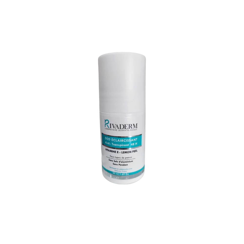 Ce produit développé par le laboratoire Rivaderm est un déodorant anti-transpirant et éclaircissant qui agit efficacement contre les tâches et les mauvaises odeurs provoquées par la transpiration excessive durant la chaleur ou activités physique intenses Ce déodorant est riche en lemon peel et en vitamine E , permettant de minimiser l'hyperpigmentation cutanée au niveau des aisselles en apportant un effet éclaircissant remarquable et en garantissant une protection et une fraicheur qui durent toute la journée