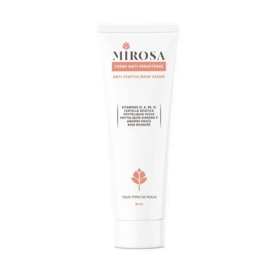 Crème anti-vergetures MIROSA, contribue à prévenir les vergetures et à réduire leur apparence lors de variations de poids (en particulier pendant la grossesse et la puberté). Sa formule associe des actifs qui : Favorisent la prévention et la réduction des vergetures. Améliorent l’élasticité et la fermeté de la peau. Aident à unifier la couleur de la peau.