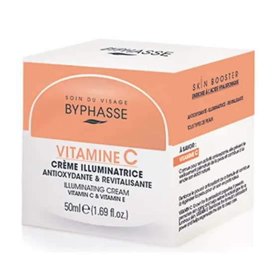 La crème illuminatrice Byphasse à la vitamine C, enrichie en vitamine E et en acide hyaluronique, aide à prévenir le vieillissement prématuré de la peau grâce à son pouvoir antioxydant. Sa formule permet d’hydrater les couches profondes de l’épiderme et d’améliorer l’élasticité cutanée. La peau retrouve son éclat naturel et un aspect plus lumineux. BÉNÉFICES – Enrichie à l’acide hyaluronique – Action antioxydante – Améliore l’aspect de la peau la laissant plus revitalisée – La peau retrouve son éclat naturel et son élasticité – Sensation non grasse à l’application
