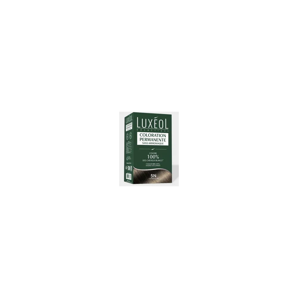 La Luxéol Coloration Permanente 5N Châtain Clair offre une couleur lumineuse et naturelle tout en couvrant 100 % des cheveux blancs. Sans ammoniaque, elle respecte le cuir chevelu et garantit une tenue longue durée. Avec son kit complet, prenez soin de vos cheveux tout en les colorant !