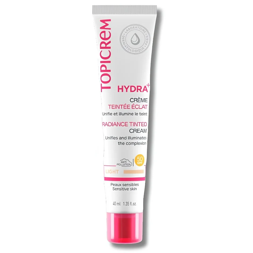 HYDRA+ Crème Teintée Éclat est un soin visage 3-en-1 conçu pour les peaux sensibles. Elle combine hydratation intense, haute protection et correction du teint. Enrichie en glycérine et en eau bio-active (bétaïne, inositol, taurine), cette crème teintée hydrate la peau pendant 24 heures, tout en unifiant le teint et en ravivant l’éclat naturel.