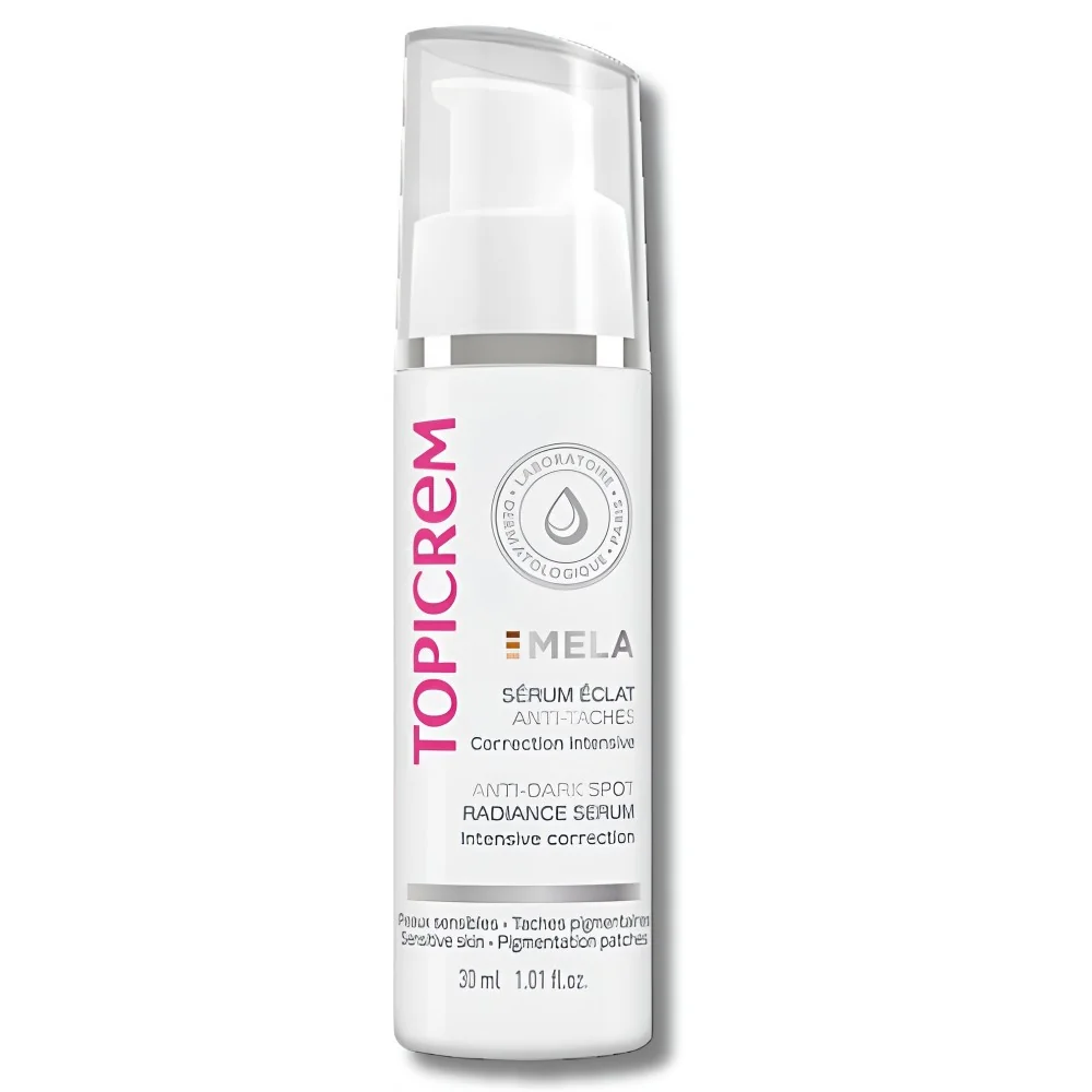 TOPICREM MELA Sérum Éclat Anti-Taches est un soin intensif conçu pour corriger les taches pigmentaires, prévenir leur apparition et raviver l’éclat du teint. Dès 7 jours, la peau est visiblement plus uniforme et lumineuse.