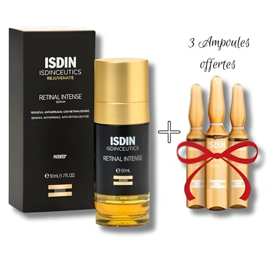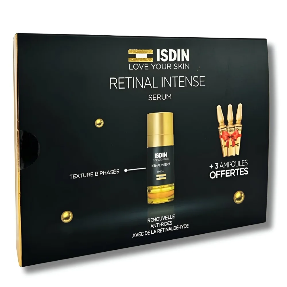 Le coffret ISDIN Retinal Intense associe un sérum de nuit au rétinaldéhyde et des ampoules antioxydantes pour une routine anti-âge complète, efficace contre les rides, la perte de fermeté et les signes de l’âge.
