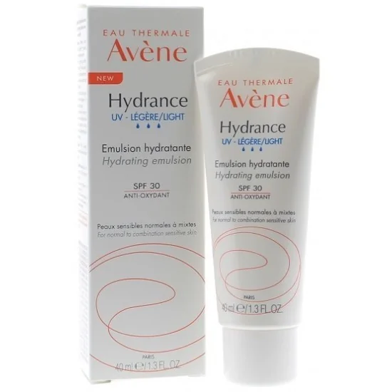 Crème hydratante Avène Hydrance UV Légère SPF30 pour peaux normales. Hydrate intensément, protège contre les UV et laisse la peau douce, confortable et protégée au quotidien.