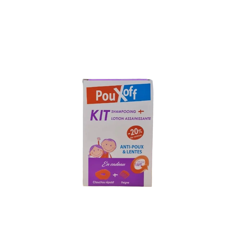 Kit poux off shampoing + lotion : Shampoing conseillé pour éliminer les poux et les lentes chez l'enfant dès 6 mois et l'adulte, respecte le cuir chevelu sensible des enfants. efficace, doux et non toxique permettant d'éliminer les poux de tête et de stopper le développement des lentes ( oeufs de poux) + lotion élimine radicalement les poux et les lentes.
