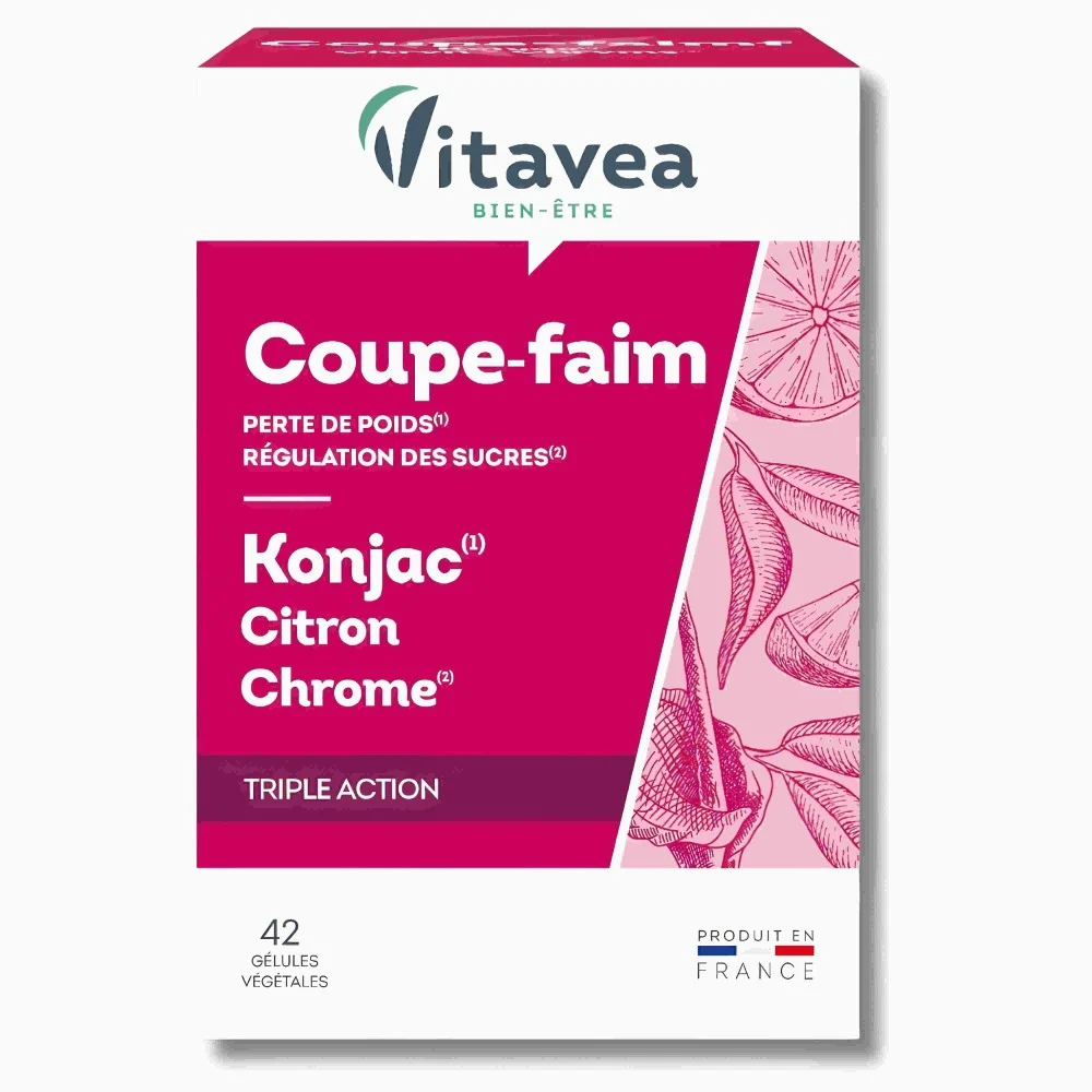 VITAVEA COUPE FAIM est un complément alimentaire formulé pour accompagner la perte de poids grâce à son effet coupe-faim naturel.