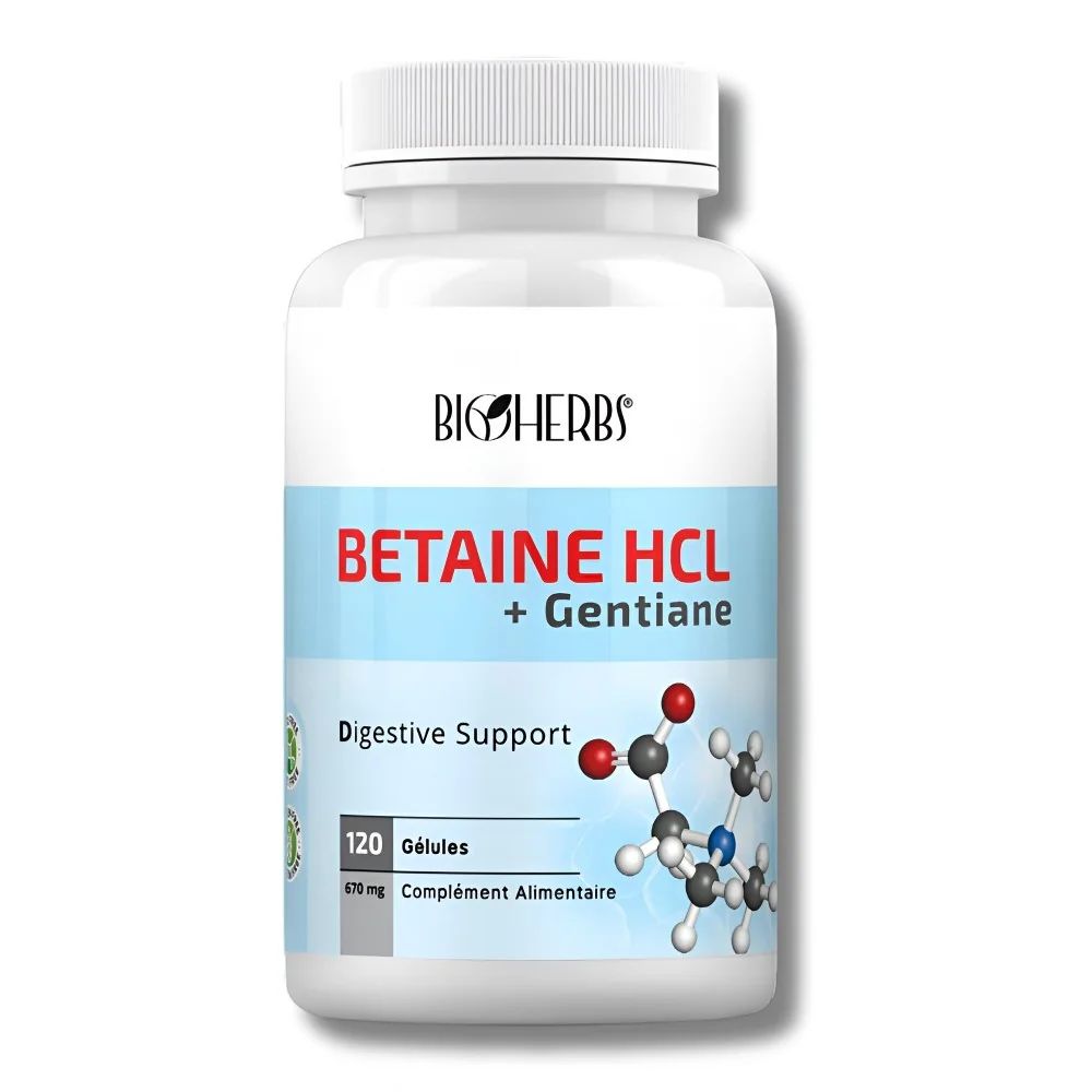 Soutient la digestion, améliore l’absorption des nutriments et soulage les troubles digestifs grâce à la bétaïne HCl et à l’extrait de gentiane.