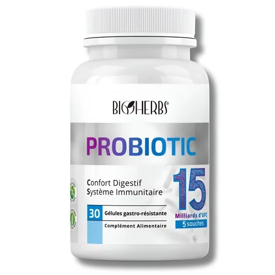 Mélange de 5 souches probiotiques dosé à 15 milliards UFC :