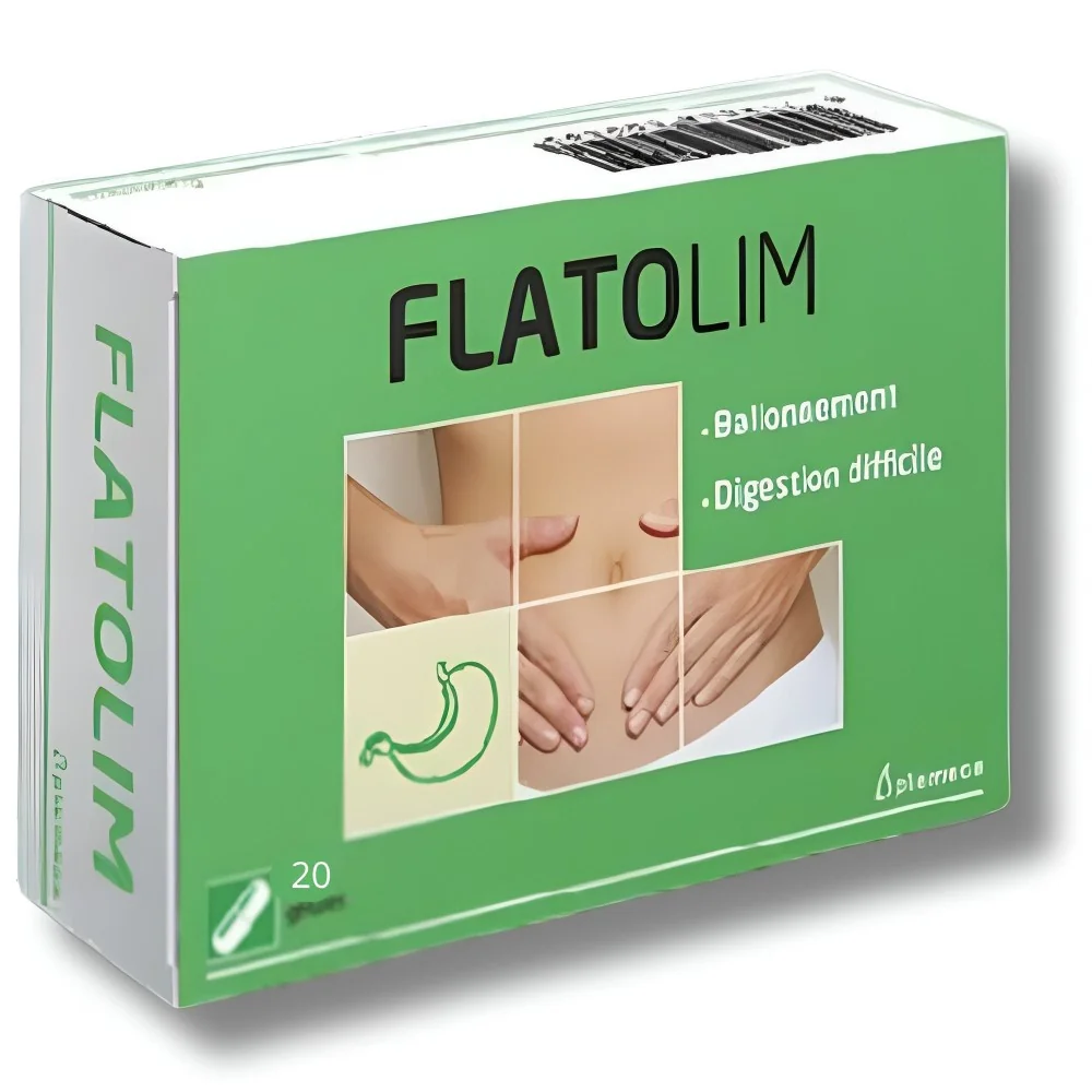 Flatolim – Boîte de 20 Capsules est un complément alimentaire conçu pour soutenir le bien-être digestif. Enrichi en anis vert et fenouil, il aide à réduire les inconforts tels que les ballonnements et favorise une digestion harmonieuse.