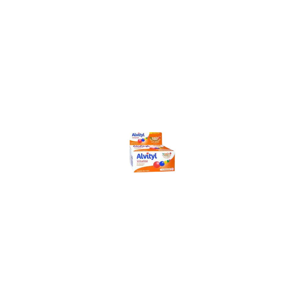 ALVITYL Vitalité A croquer dès 4 ans ALVITYL Vitalité A croquer dès 4 ans est un concentré de vitalité dans un comprimé au délicieux goût de fraises, testé et approuvé par les enfants. Alvityl Vitalité à croquer contient 12 vitamines et 8 minéraux dans un format adapté pour couvrir les apports sur un mois complet dès 4 ans. Grâce à son nouveau goût fraise, Alvityl Vitalité à croquer ravira les papilles de vos enfants qui n’appréhenderont plus de prendre leur cure de vitamines.