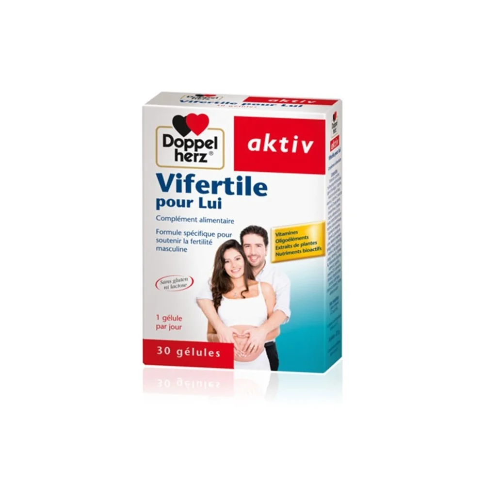 Aktiv Vifertile pour Lui des laboratoires Doppelherzv est une combinaison de vitamines et oligo-éléments essentiels tels que la L-Arginine, L’extrait de Ginseng, le Zinc, le Sélénium… pour une spermatogénèse normale. Il est indiqué de prendre 1 seule gélule par jour pour : Augmenter les chances de grossesse Soutenir la production des spermatozoïdes et leur maturation Maintenir des taux optimaux de testostérone Corriger l’hypofertilité masculine due à l’oligospermie