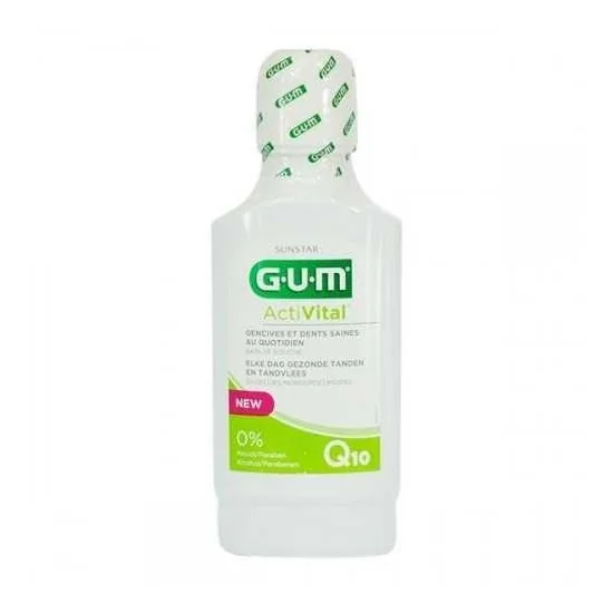 Le bain de bouche Gum Activital au Q10 est recommandé pour préserver la santé des dents et des gencives saines au quotidien. Il est destiné aux adultes et aux enfants de plus de 10 ans.