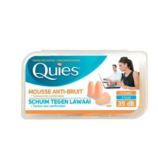 Pour qui : Adultes Indications : Réduction du bruit Composition : Mousse Couleur : Chair Réduction du bruit : Jusqu'à 35dB On aime : La mousse est lisse et douce Résultats : Les oreilles fragiles aux bruits forts sont protégées Contenu : 3 paires