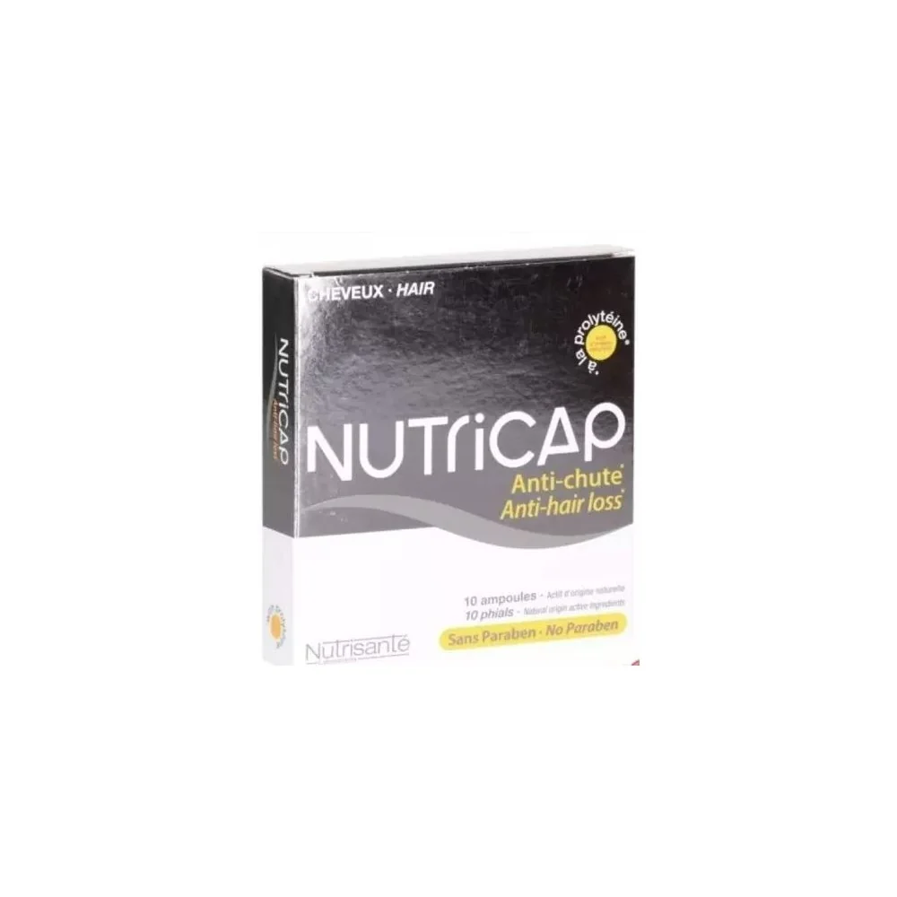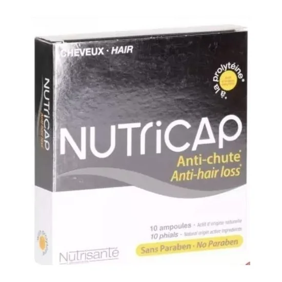 Nutricap Anti Chute Sérum, présenté en 10 ampoules, est conçu pour freiner la chute des cheveux, stimuler leur pousse et leur croissance. Formulé avec de la prolytéine, un extrait d’origine végétale qui retarde la chute des cheveux, et de l’ancrine qui réduit de 30 % le nombre de cheveux en phase télogène (chute), ce sérum agit directement à la racine pour lutter contre la perte de cheveux et favoriser la repousse des cheveux existants.