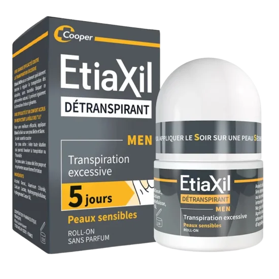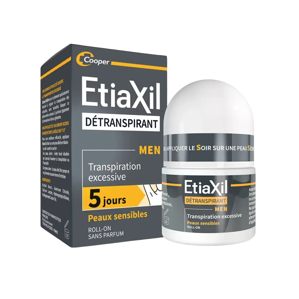 Etiaxil Détranspirant MEN : efficacité anti-transpirante 5 jours, tolérance renforcée pour peaux sensibles, application simple pour un confort durable.