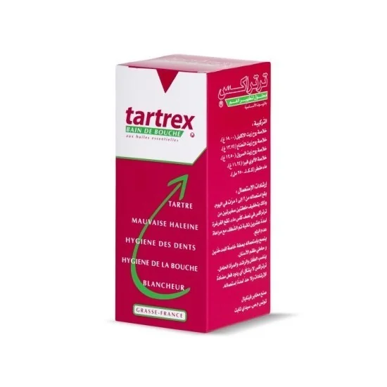 TARTREX BAIN DE BOUCHE AUX HUILES ESSENTIELLES est efficace contre la mauvaise haleine chronique ou occasionnelle, grâce à sa composition aux huiles essentielles naturelles (romarin, menthe, cyprès) . Actif pour purifier la cavité buccale, empêcher la formation de la plaque dentaire et prolonger la blancheur des dents après le brossage.