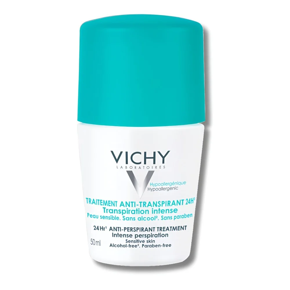 VICHY Déodorant Anti-Transpirant 50ml : efficacité 48h, confort et douceur sans traces blanches ni inconfort, pour une peau protégée au quotidien.