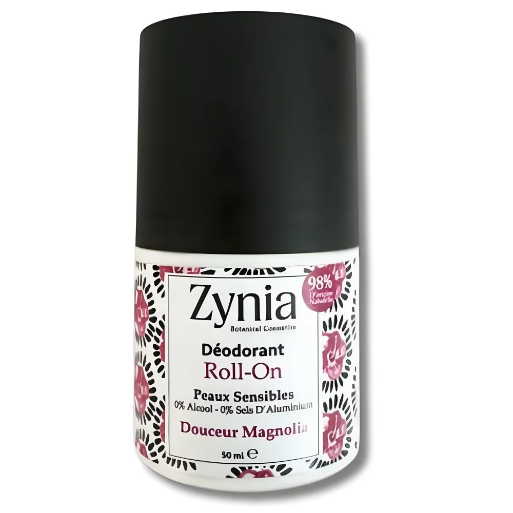 ZYNIA Roll-On Magnolia : 98% naturel, sans alcool, peaux sensibles. Fraîcheur florale, anti-odeurs, purifiant. Douceur et efficacité au quotidien.