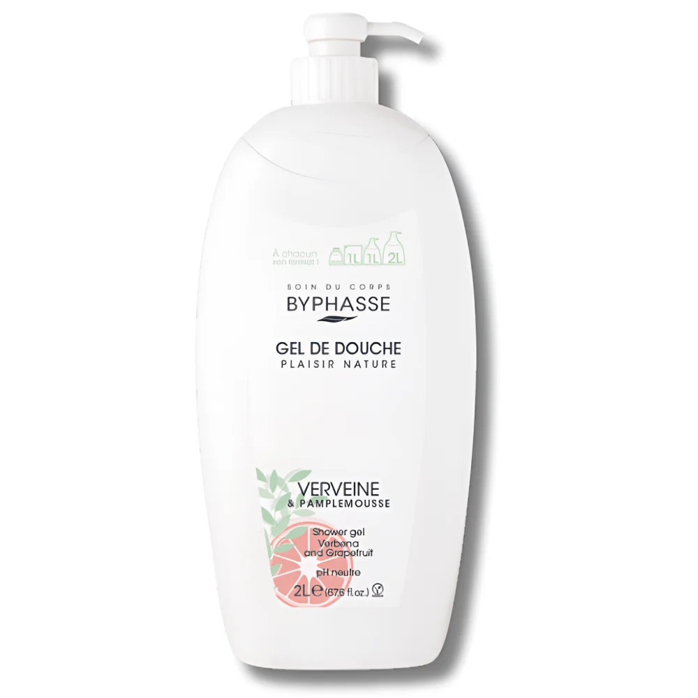 Gel Douche Caresse Verveine/Pamplemousse Byphasse : nettoie en douceur, parfum frais et format généreux 2L pour 200 douches.