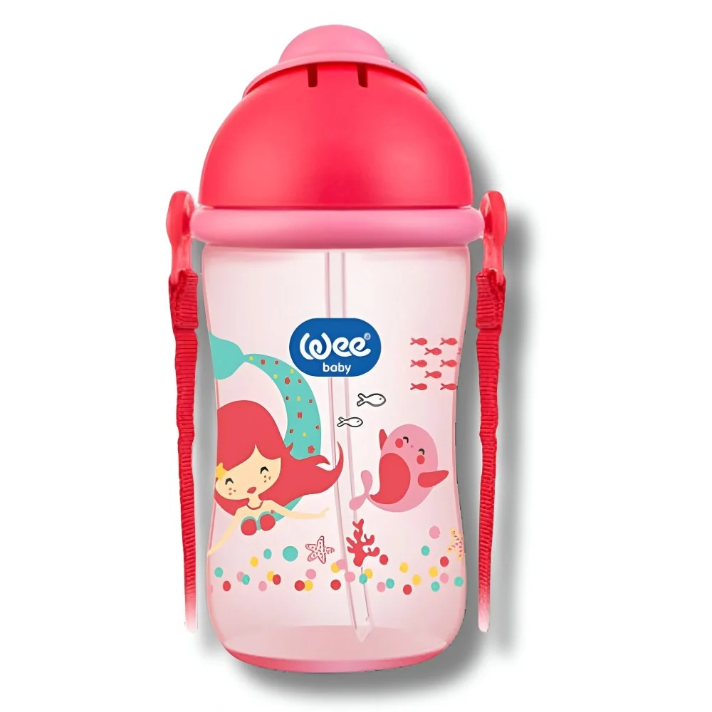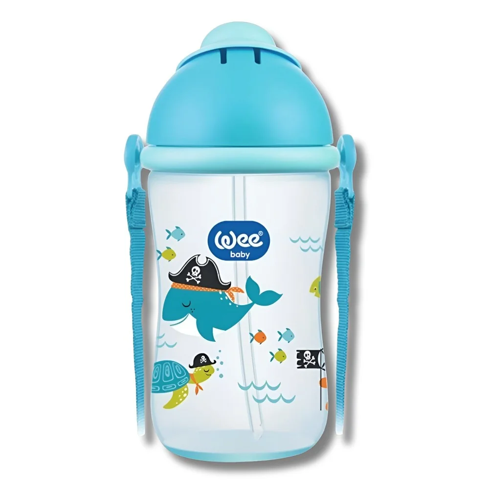 Tasse en paille Wee Baby 380ml avec poignées ergonomiques, embout souple antifuite et base antidérapante, parfaite dès 6 mois.