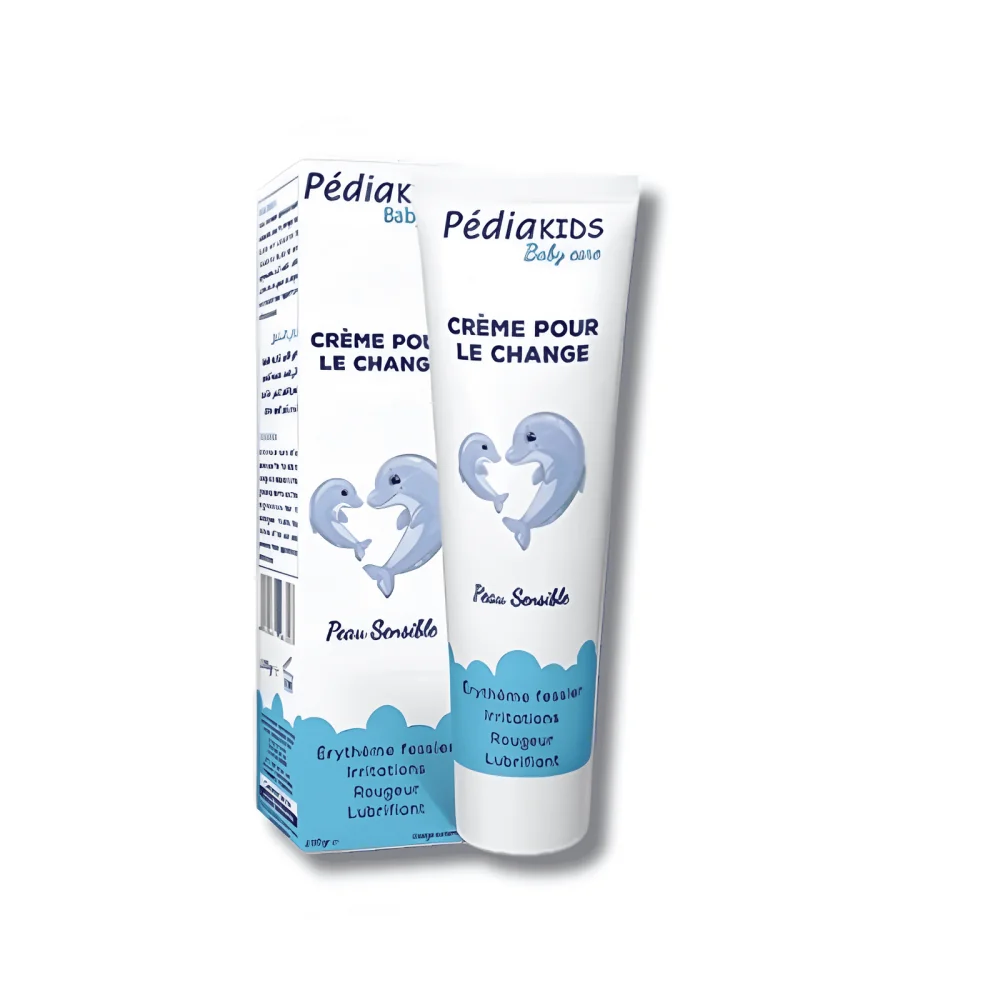 La CRÈME POUR LE CHANGE PEDIAKIDS protège et apaise la peau de bébé contre les irritations et les rougeurs, offrant un soin doux et efficace.