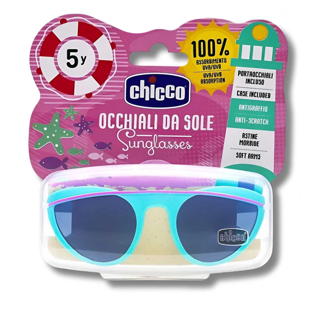 Chicco Lunettes de Soleil 5Y+ : verres en polycarbonate résistants et monture souple pour une protection UV optimale et un confort durable.