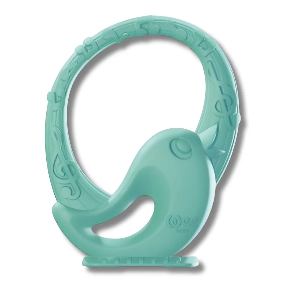 Anneau de dentition en forme de cœur, réfrigérable, conçu pour masser et apaiser les gencives sensibles de bébé tout en stimulant ses sens visuels.