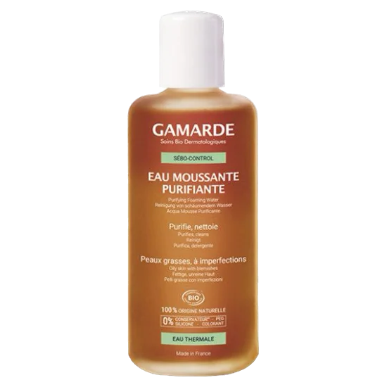 GAMARDE EAU MOUSSANTE PURIFIANTE 200ML GAMARDE EAU MOUSSANTE PURIFIANTE est la solution idéale pour nettoyer en profondeur votre peau mixte à grasse, éliminer les impuretés et l'excès de sébum, avec une formule douce mais efficace et des ingrédients naturels pour une peau saine et équilibrée.