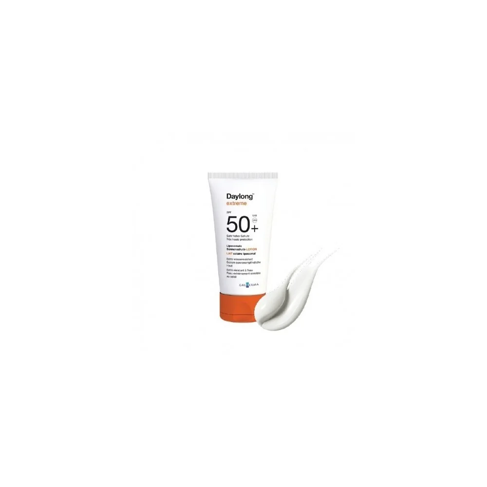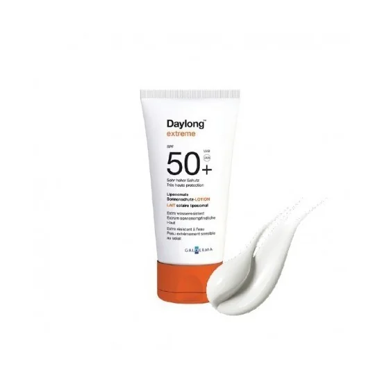 Très Haute Protection UVA et UVB. Daylong Extrême SPF50+ est une lotion liposomale d'où une rémanence améliorée. Daylong Extrême SPF50+ est extra-résistant à l'eau et résistant à la transpiration. La rémanence est excellente, et une application par jour suffit généralement*. Sans parfum, sans colorant. Daylong Extrême SPF50+ est enrichi en vitamine E et aloe vera. Indications - Phototypes I à IV - En cas d'exposition extrême aux rayons UV - Pous les peaux extrêmement sensibles au soleil