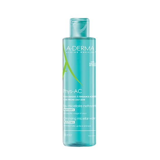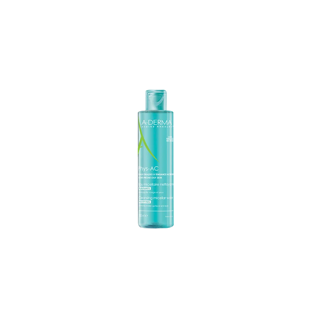 Eau micellaire Biology AC A-Derma 100 % d’origine naturelle : nettoie, démaquille et purifie les peaux grasses à imperfections, sans dessécher.